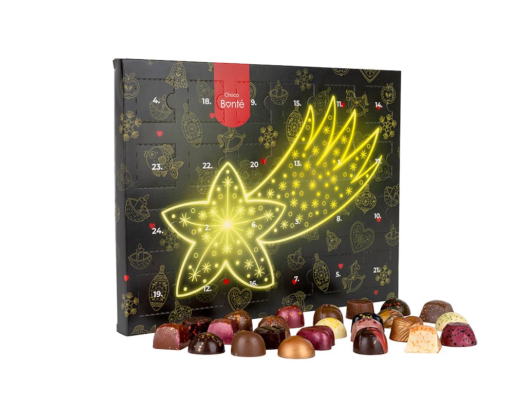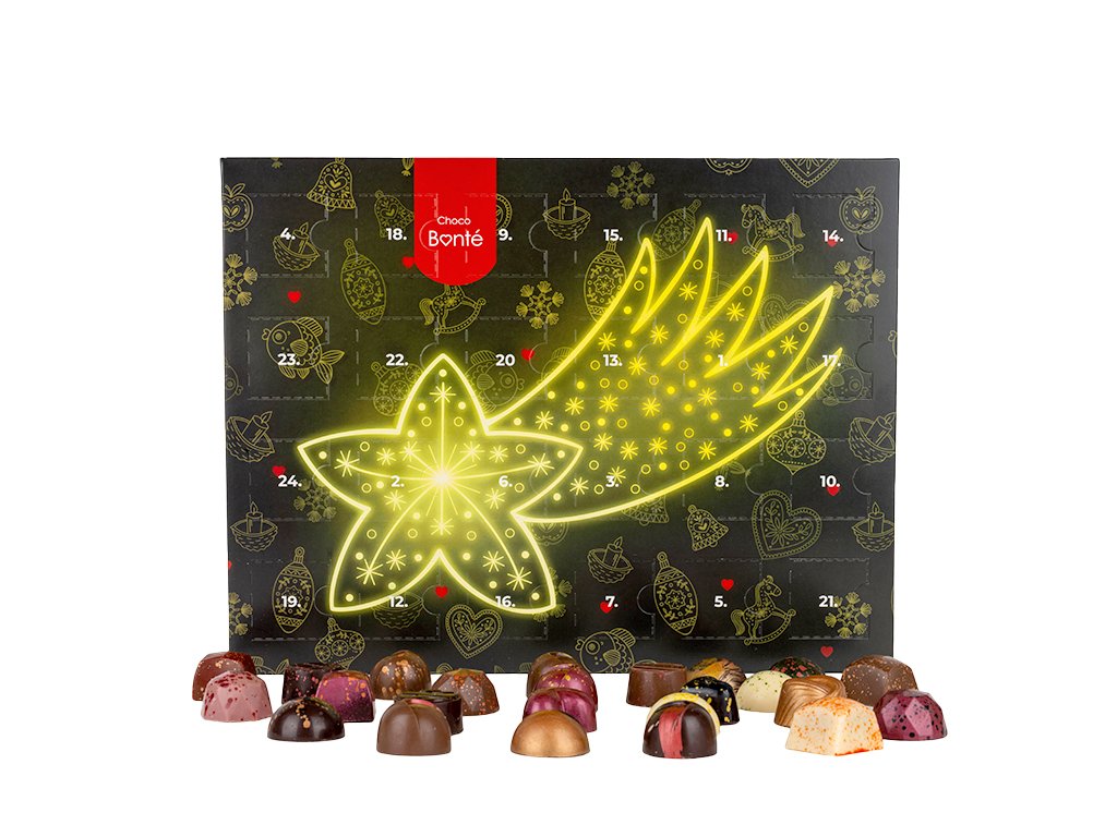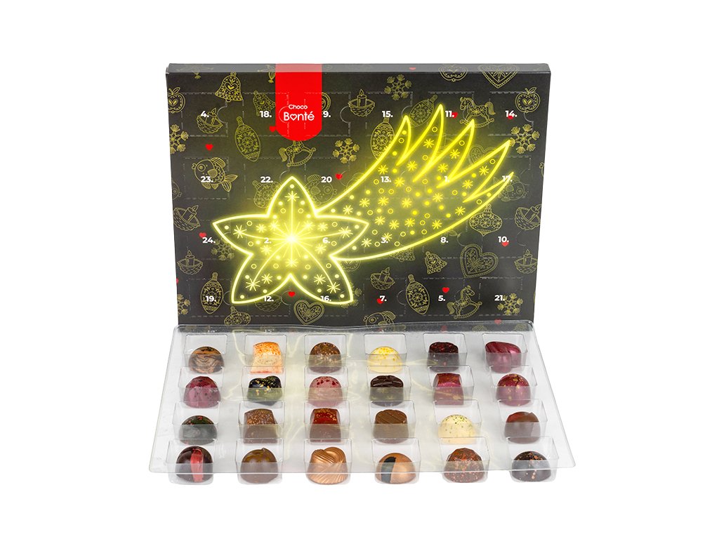 Každý den adventu objevíte novou chuť – od jemně ovocných po výrazne čokoládové. Každá pralinka je malým mistrovským dílem.