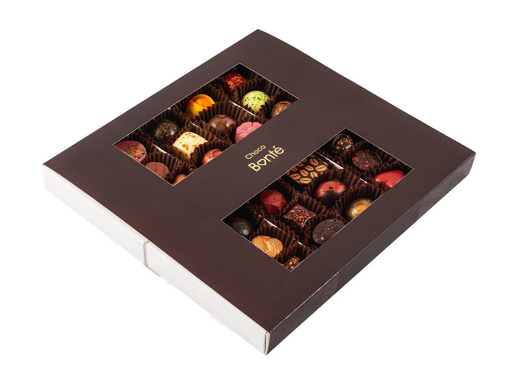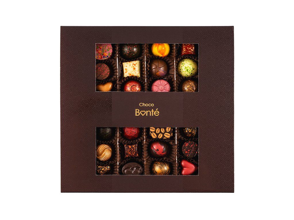 Dopřejte si výjimečný čokoládový zážiteks kolekcí 24 ks ručně vyráběných pralinek, které zaujmou rozmanitostí chutí, vůní a jemných náplní. Každá čokoládová pralinkaje malým uměleckým dílem vytvořeným s vášní, důrazem na detail a mistrovskou prací sčokoládou.