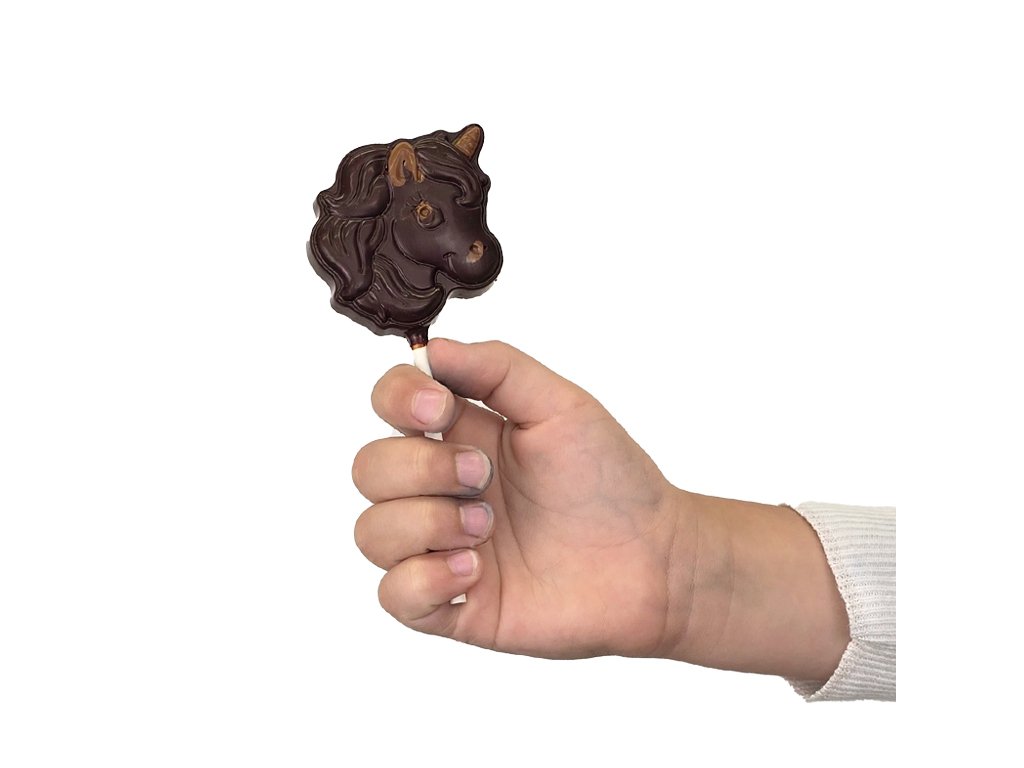 Čokoládové lízátko hořké s mléčnou čokoládou - jednorožec