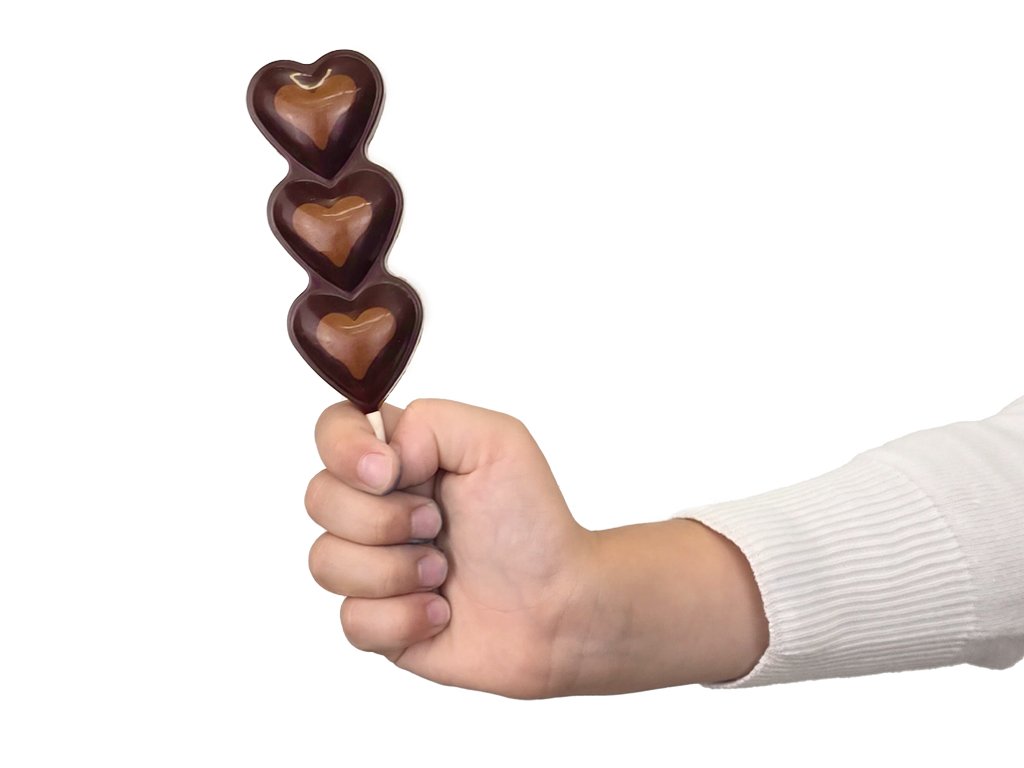 Čokoládové lízátko hořké s mléčnou čokoládou - tři srdce