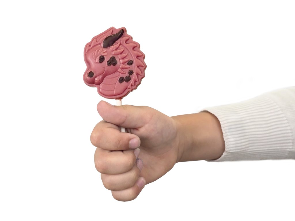 Čokoládové lízátko ruby s hořkou čokoládou - drak