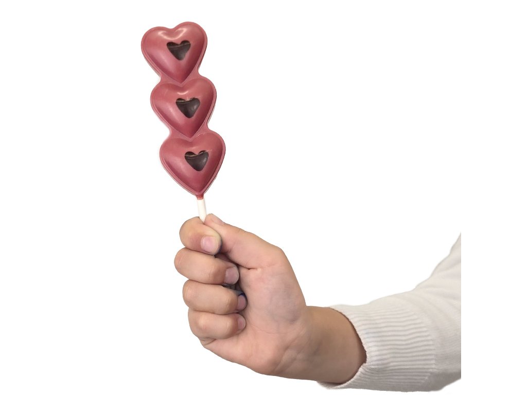 Čokoládové lízátko ruby s hořkou čokoládou - tři srdce