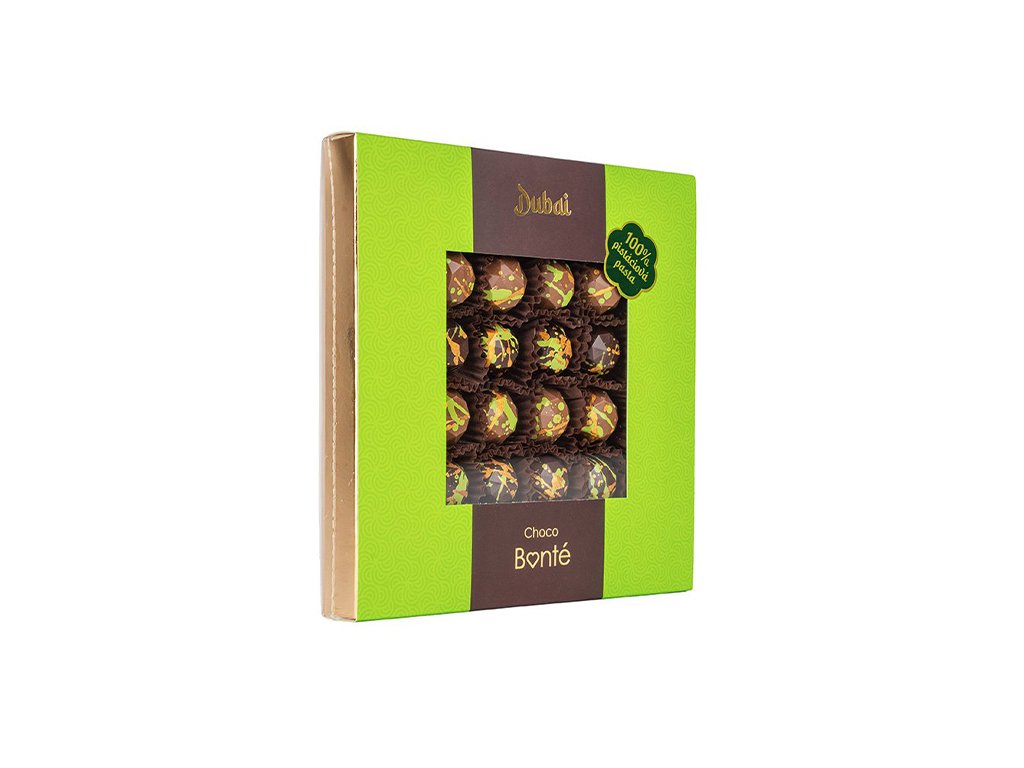 Dubajská srdce Choco Bonté je luxusní pochoutka s orientálním kouzlem, kombinující mléčnou a hořkou čokoládu, pistáciovou pastu, kadayif a tahini. Vyrobená bez palmového oleje,...