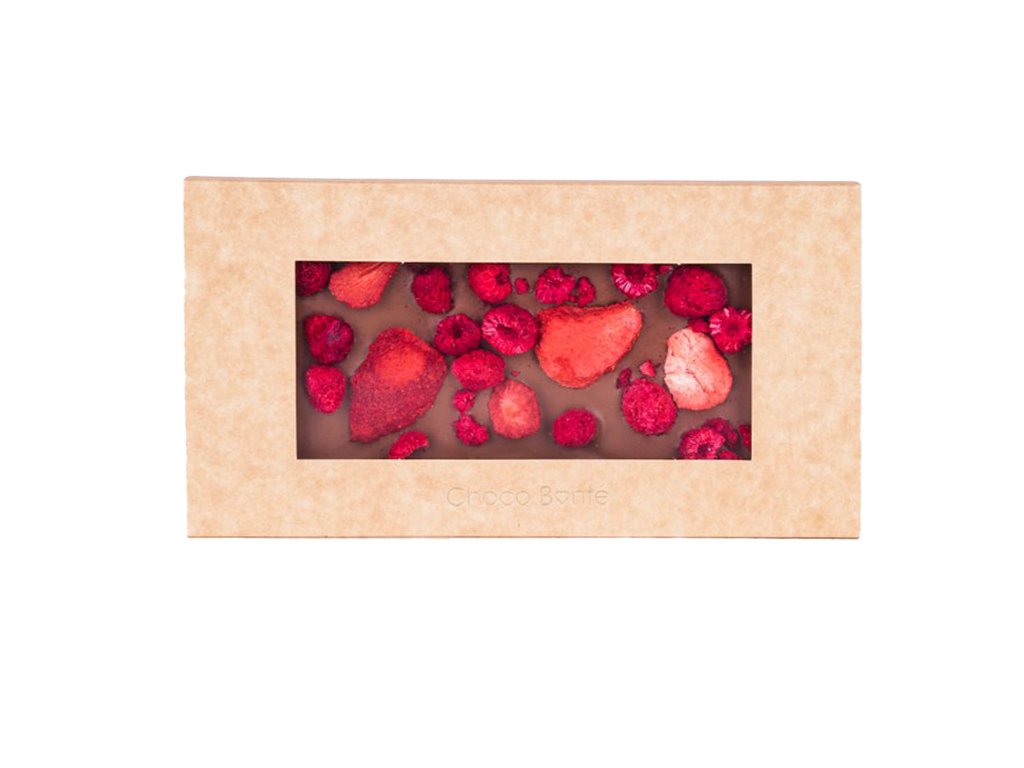 Mléčná čokoláda s jahodami a malinami