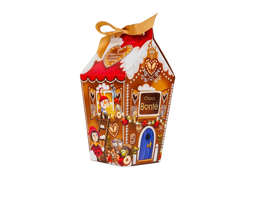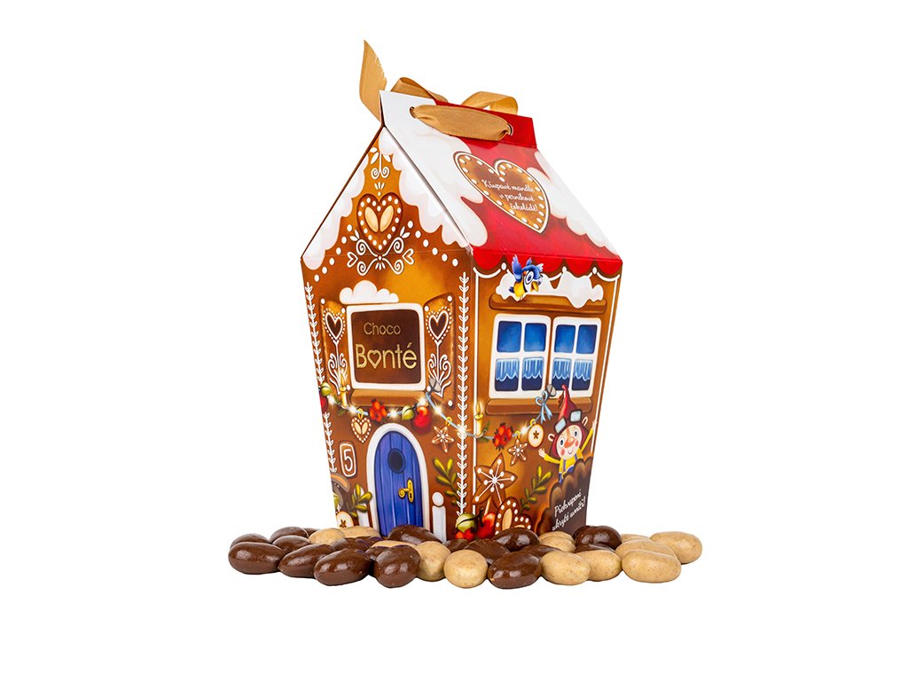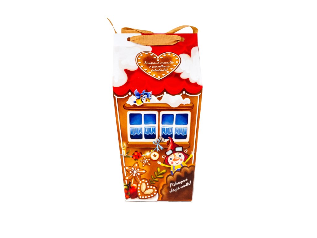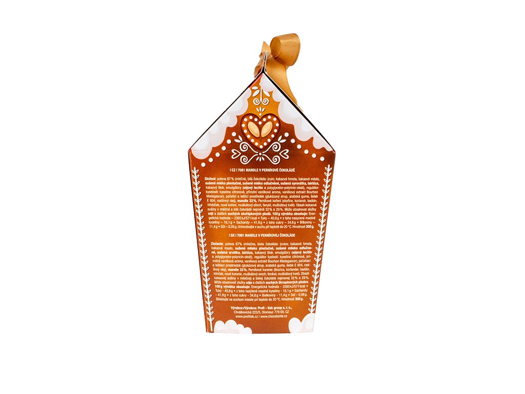 Objevte kouzlo Vánoc v jedinečné Perníkové chaloupce, která v sobě ukrývá víc než jen sladkost. Pod křupavou vrstvou voňavého perníkového koření čekají mandle obalené v jemné bílé a lahodné mléčné čokoládě s příchutí perníkového koření. Každý kousek vás zahřeje na jazyku a připomene chvíle, kdy domov provoní čerstvě upečené cukroví.