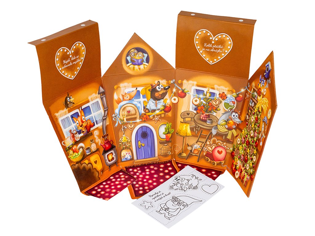 Ale tahle chaloupka není obyčejná. Uvnitř se skrývá překvapení – hravé ilustrace a úkoly, které zabaví děti, probudí fantazii a přinesou rodinám chvíle společné radosti. A až sladkosti zmizí? Chaloupka se promění v malý domeček pro lesní zvířátka, kde je vítá kouzelný skřítek Alfík. Společně rozvěšují voňavou vánoční výzdobu a těší se na kouzelný Štědrý večer.