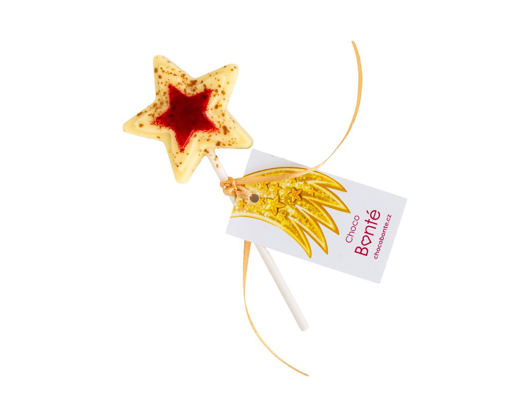 Dopřejte dětem kousek vánočního kouzla s naším čokoládovým lízátkem ve tvaru hvězdy. Skřítek Alfík ji stvořil z jemné bílé čokolády se zdobením, inspirované jeho zářivou kometou – symbolem radosti a přání, která se o Vánocích plní.