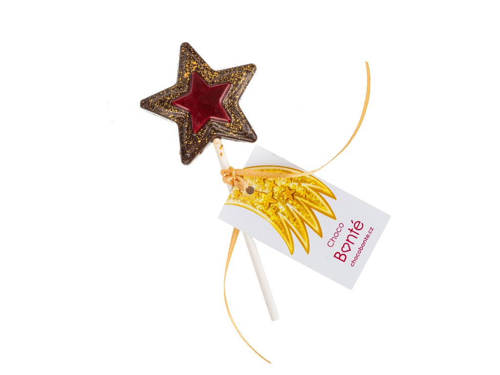 Dopřejte dětem kousek vánočního kouzla s naším čokoládovým lízátkem ve tvaru hvězdy. Skřítek Alfík ji stvořil z hořké čokolády se zdobením, inspirované jeho zářivou kometou – symbolem radosti a přání, která se o Vánocích plní.