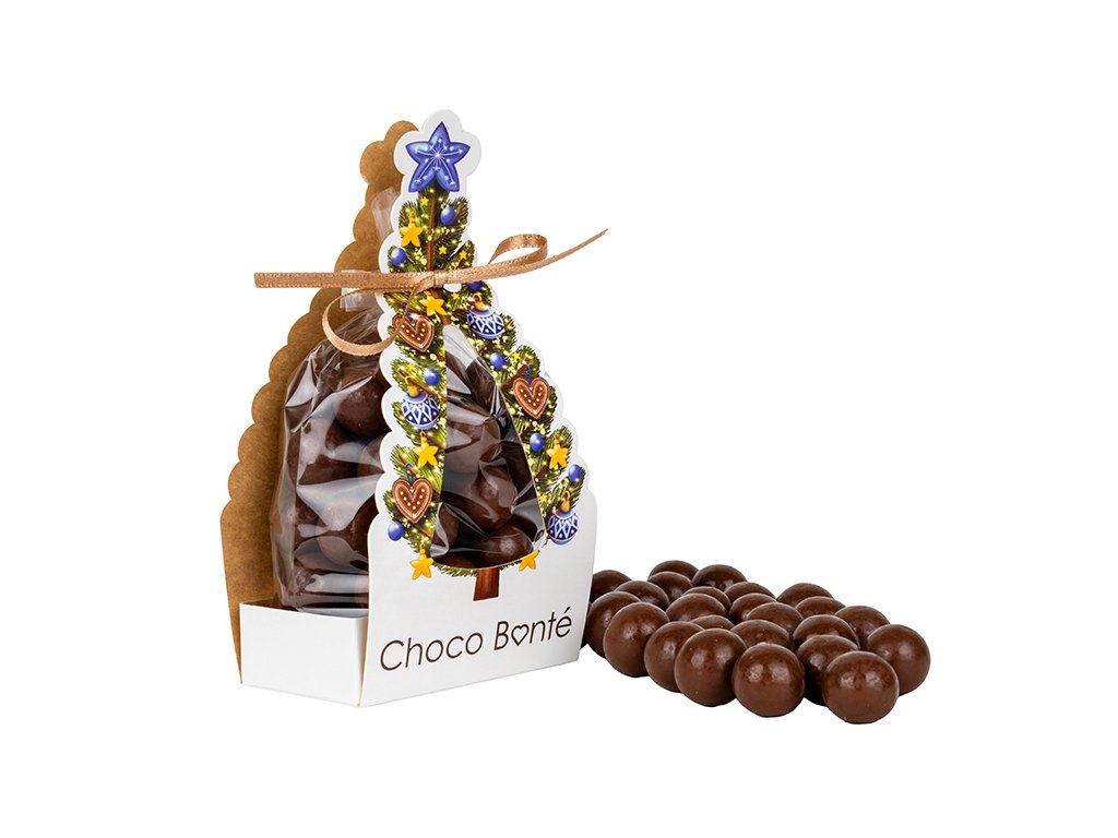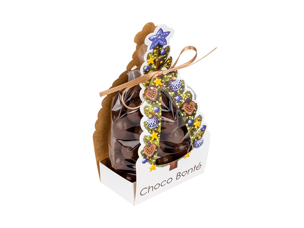 Kouzelný čokoládový stromeček plný křupavých lískových oříšků v hořké a mléčné čokoládě. Čoko skřítek Alfík ho ozdobil tak, aby rozzářil vánoční chvíle.