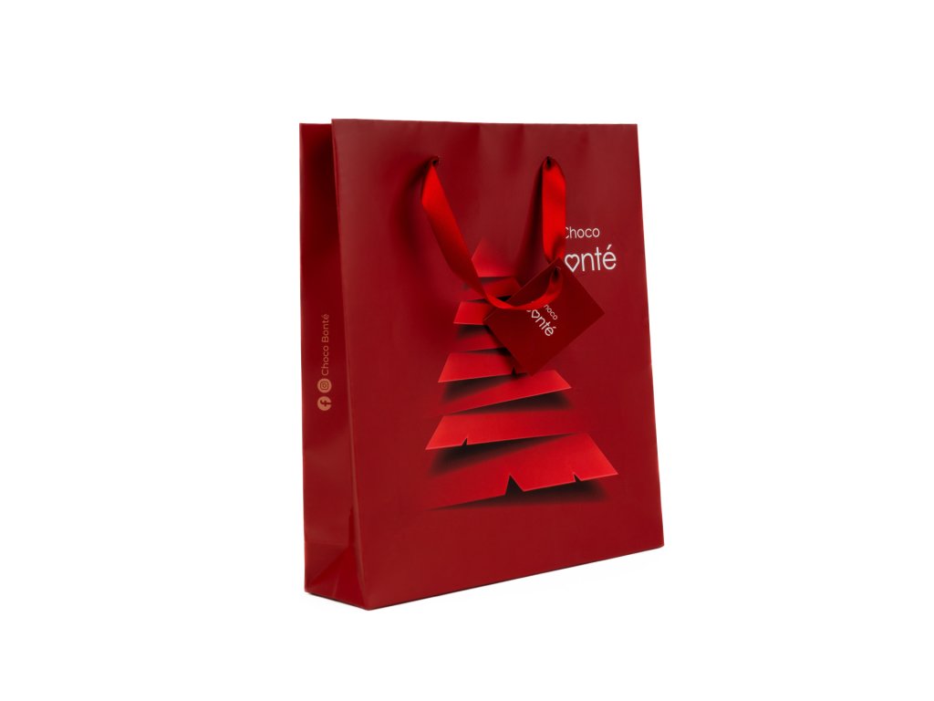 Ulehčete Ježíškovi balení sladkých dárků! 🎅 Naše elegantní vánoční taška v matně červeném provedení s visačkou dodá vašim čokoládovým dárkům kouzelnou atmosféru.
