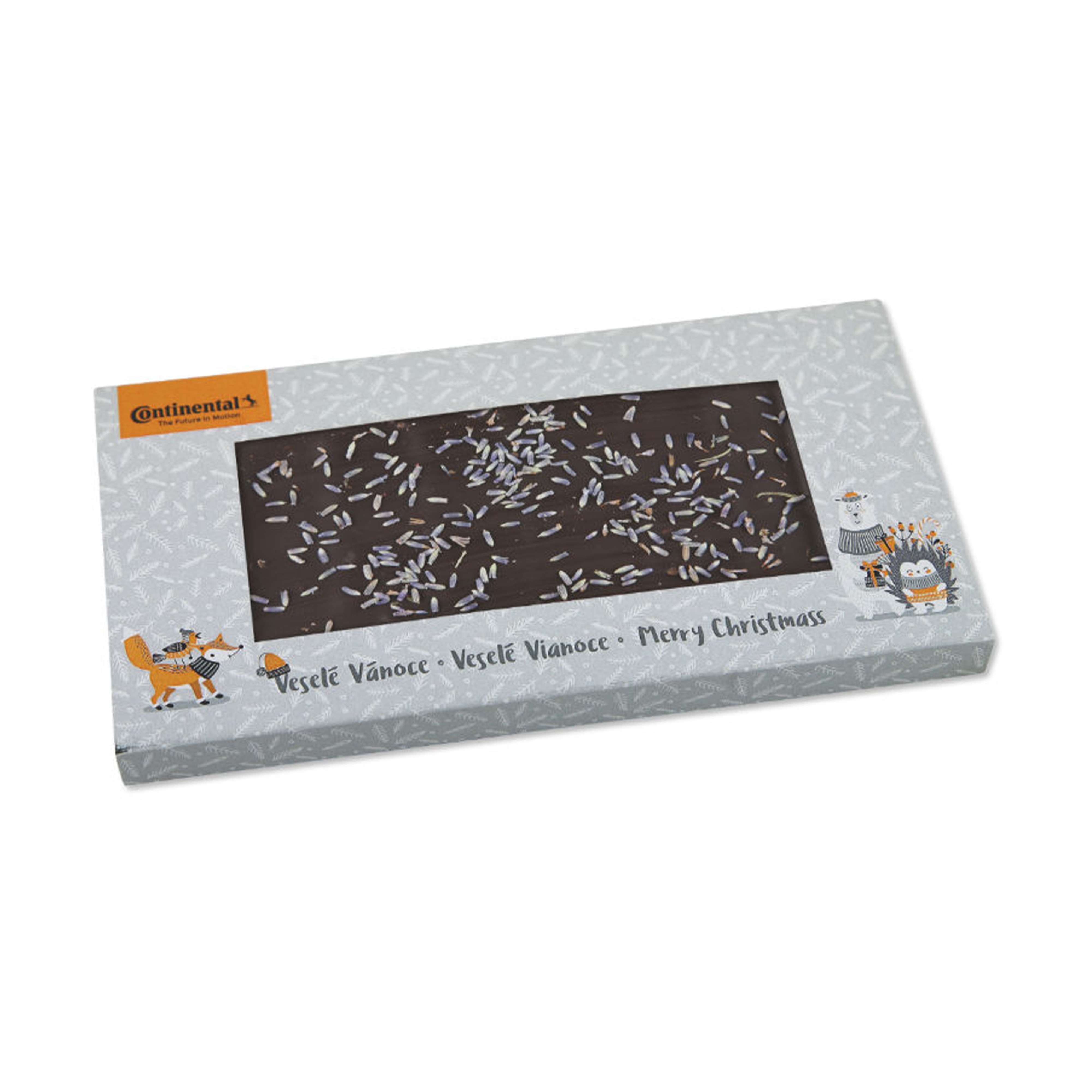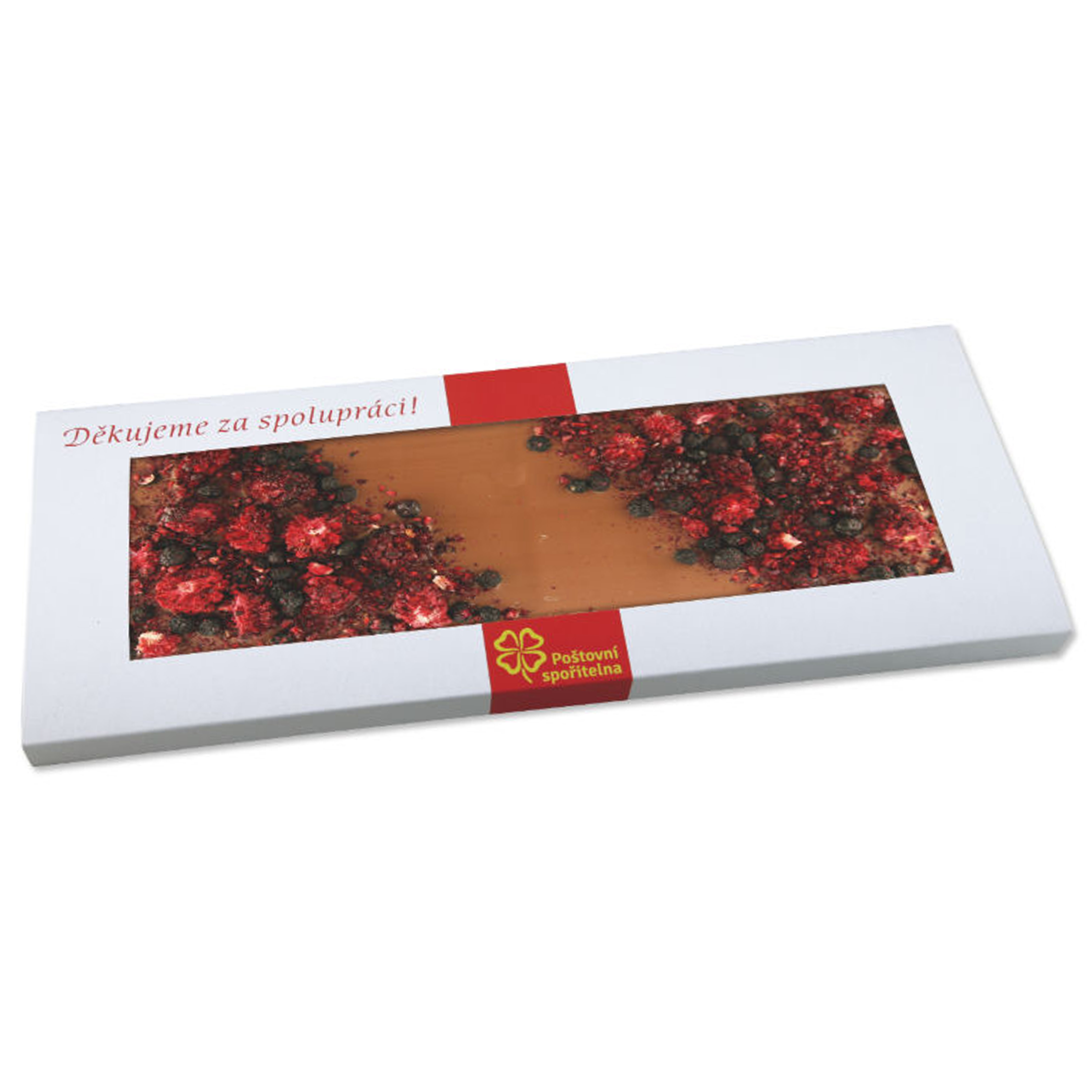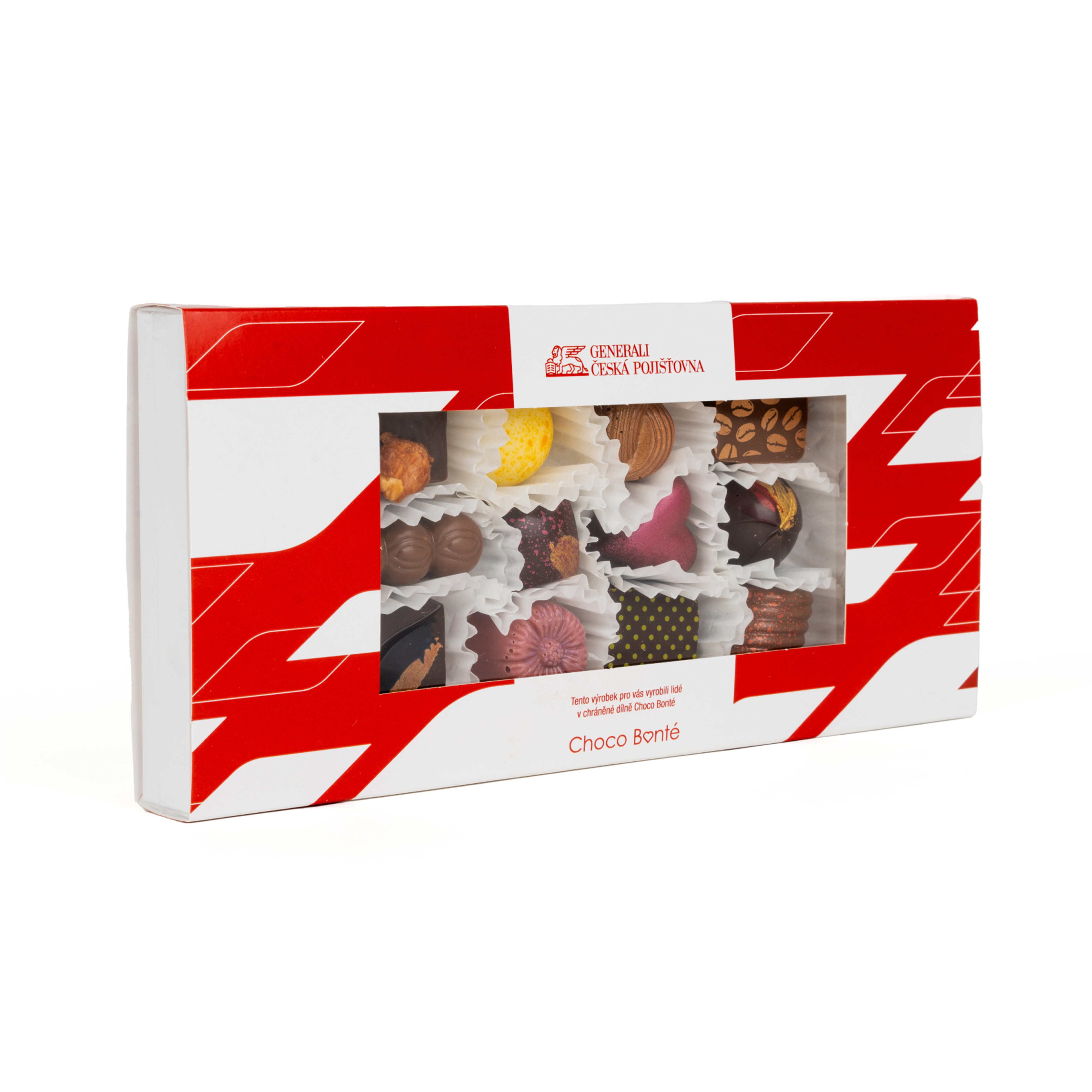 Nabízíme čokolády, bonboniéry, lízátka, ořechy v čokoládě i kvalitní čaje. Vše dokážeme přizpůsobit Vašim firemním barvám a stylu.