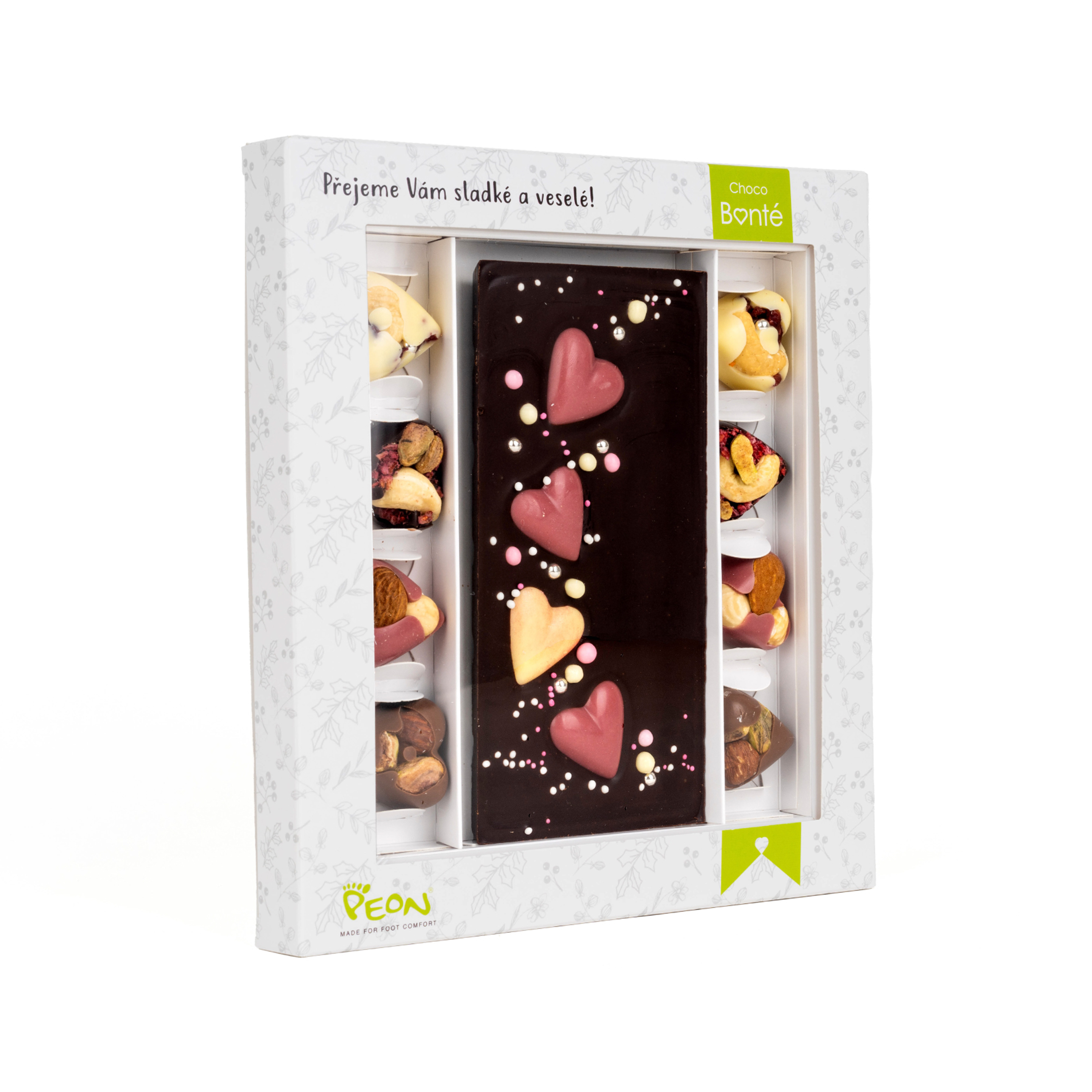 - Výběr produktů: Zvolte si ty nejlepší pralinky, čokolády nebo ořechy v čokoládě z naší nabídky.